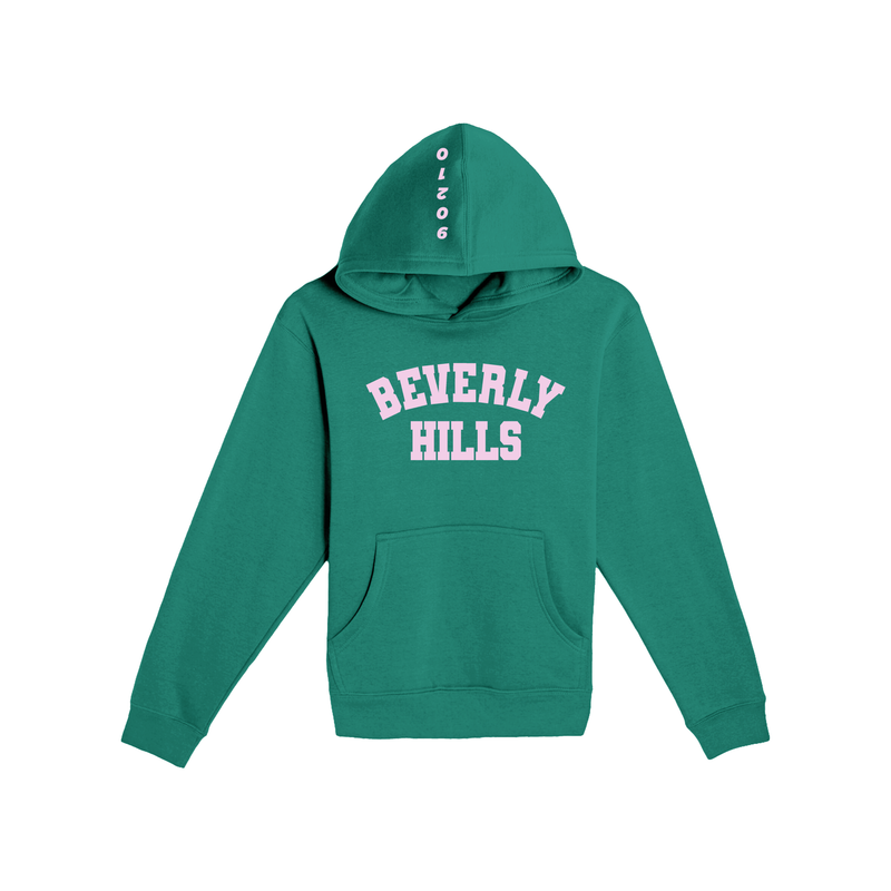 Green Beverly Hills Hoodie for kids has a classic cut with long sleeves and a perfect relaxed/unisex feel. True to size, as a unisex Hoodie.