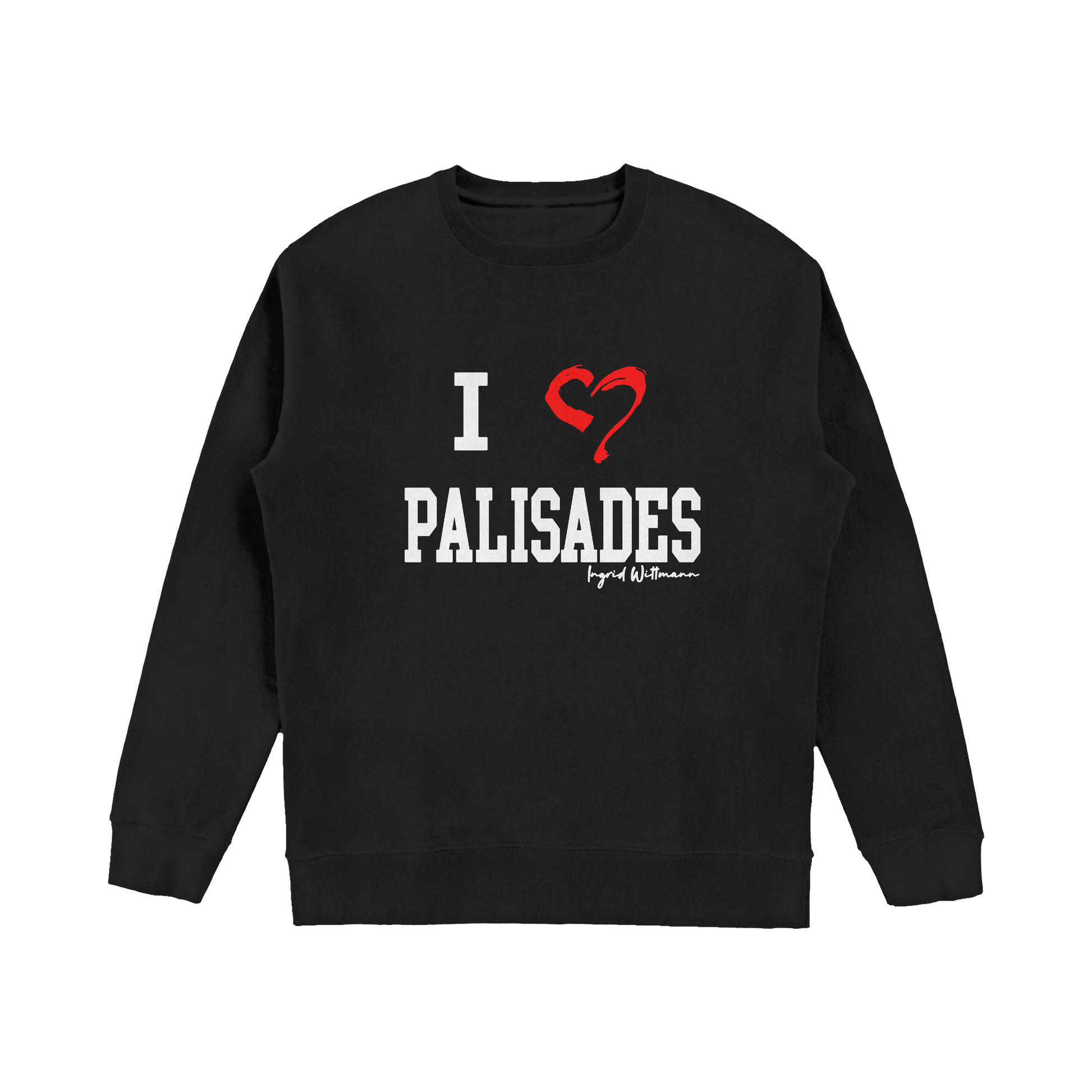 Our I Love Palisades Crewneck Black is a must-have for any fashion-forward individual. Inspired by the stunning Palisades cliffs, this unique design features a soft black fabric and a comfortable fit. Show your love for the Palisades with this stylish piece.